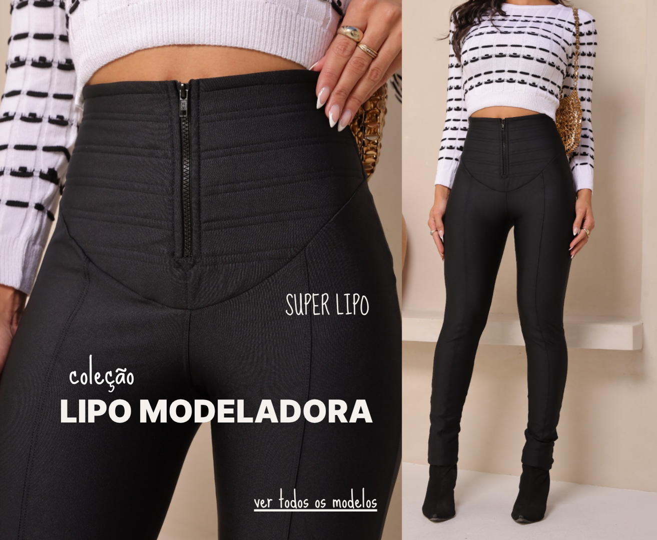 Calça Lipo 3 Zíperes - Modeladora Power Original - (Várias Cores)